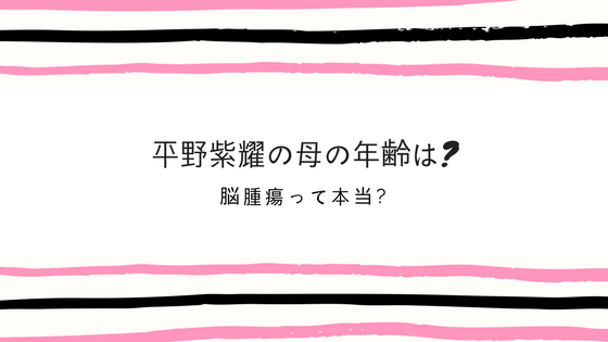 キンプリとしてのデビューを控えた平野紫耀くんの母親の年齢が気になる!!と突然閃き(?)、調べていたら、平野紫耀くんの母親は脳腫瘍という記事を発見…!!え、年齢気にするより先にもっと気になるじゃん脳腫瘍!!ということで、平野くんの母親の年齢と脳腫瘍... -