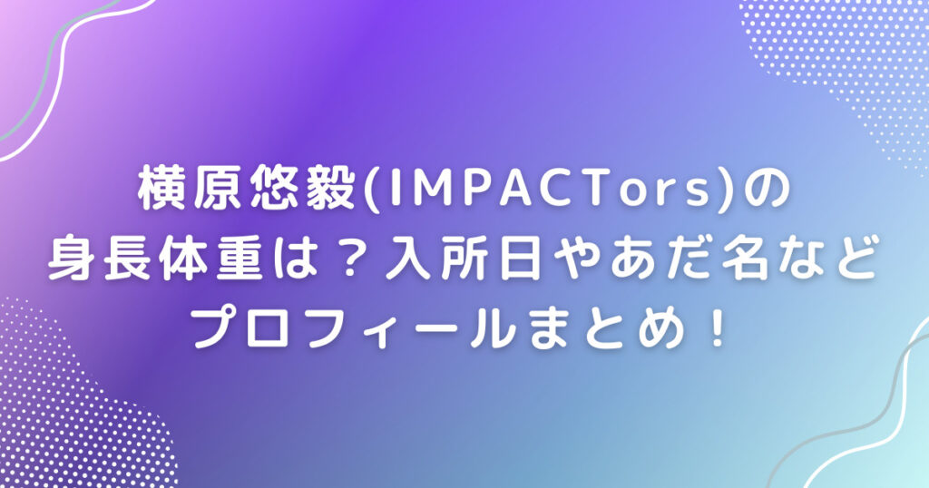 横原悠毅(IMP.)の身長体重は?入所日やあだ名などプロフィールまとめ!