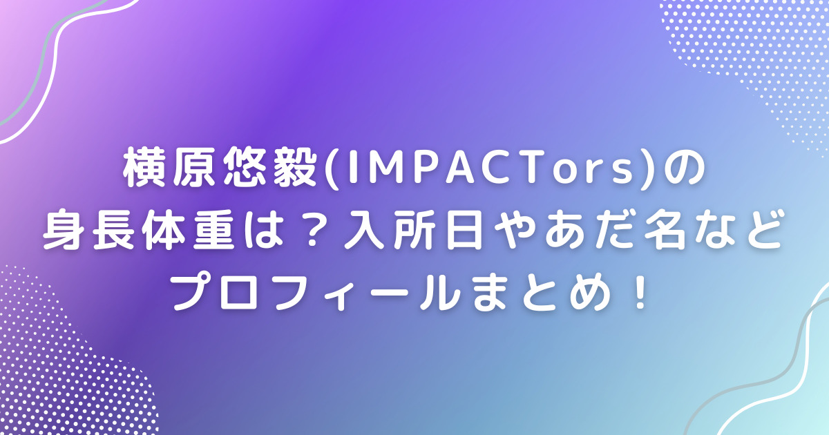 IMPACTorsのメンバー、横原悠毅くんのプロフィール情報を調べてみました。